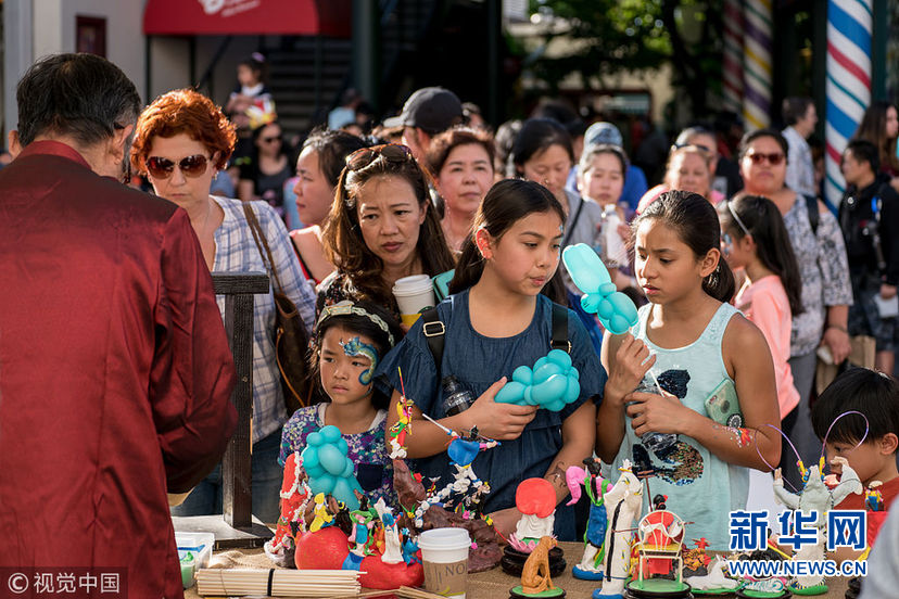 當(dāng)?shù)貢r(shí)間1月28日,美國(guó)洛杉磯,當(dāng)?shù)谿rove商場(chǎng)舉行少林武術(shù)表演以及其他中國(guó)文化類的演出,慶祝傳統(tǒng)新年,場(chǎng)外攤位還有傳統(tǒng)剪紙,捏面人,糖畫,彩繪等項(xiàng)目。圖為捏面人。(圖片來(lái)源:視覺中國(guó))