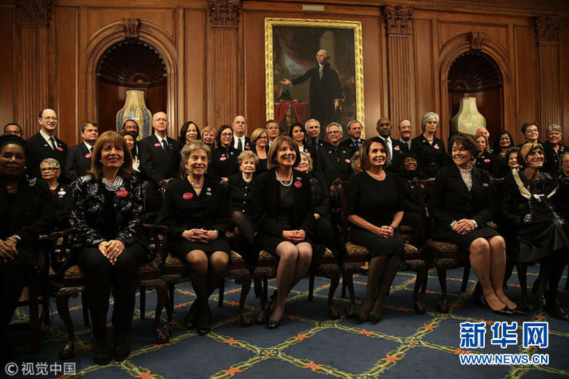 當(dāng)?shù)貢r間1月30日,美國華盛頓,民主黨國會議員和性侵幸存者一同穿黑衣現(xiàn)身國會大廈,聲援勇敢反對性騷擾和歧視的人們。眾議院民主黨人計(jì)劃穿黑衣出席特朗普的國情咨文演講,支持MeToo和TimesUp組織。 (圖片來源:視覺中國)