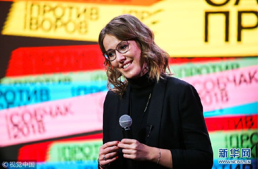 當(dāng)?shù)貢r間2月3日,俄羅斯圣彼得堡,俄羅斯電視節(jié)目主持人、總統(tǒng)候選人克謝尼婭·索布恰克會見支持者。(圖片來源:視覺中國)