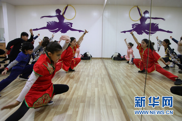 學(xué)生們跟著一名“洋老師”學(xué)中國(guó)功夫。新華網(wǎng)發(fā)(李良勇攝)