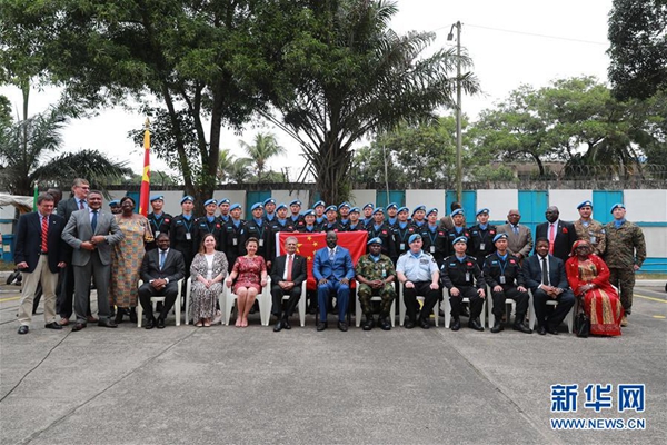 告別儀式結(jié)束后,維阿接見中國第五支駐利比里亞維和警察防暴隊(duì)隊(duì)員,感謝中方為維護(hù)利比里亞和平穩(wěn)定作出的突出貢獻(xiàn),并與隊(duì)員們合影留念。