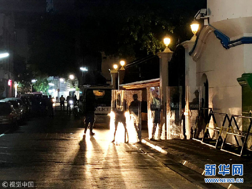當(dāng)?shù)貢r間2月5日,馬爾代夫馬累,安全部隊(duì)駐守在最高法院外。馬爾代夫法律事務(wù)部長沙庫爾5日晚通過國家電視臺宣布,馬爾代夫總統(tǒng)亞明已正式發(fā)布命令,從當(dāng)天開始全國實(shí)行為期15天的緊急狀態(tài)。(圖片來源:視覺中國)