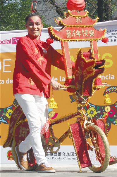 獲得大賽一等獎(jiǎng)的作品是利用廢報(bào)紙?jiān)谧孕熊嚿涎b扮出的巨大“報(bào)紙犬”,狗年元素和綠色出行元素兼而有之,凸顯廢物利用的環(huán)保主題。三人創(chuàng)作團(tuán)隊(duì)中的貝尼托告訴本報(bào)記者,他們經(jīng)營一家以紙板、報(bào)紙、塑料等為原料制作手工藝品的小型公司,這次的作品耗時(shí)兩周。他說:“與去年相比,今年參加比賽的人更多、新點(diǎn)子也更多了,這樣的大型活動(dòng)讓更多墨西哥人對中國文化產(chǎn)生興趣。”