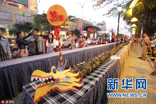 越南芽莊一酒店制作“長龍”粽子慶祝新年。(圖片來源:東方IC)