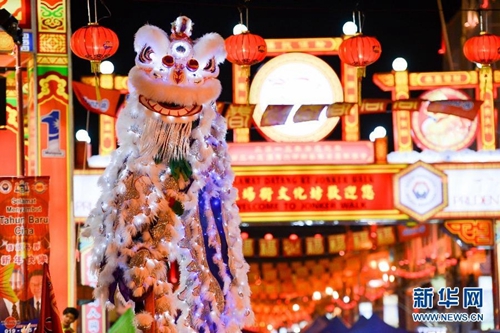 2013年馬來西亞元宵節(jié),馬六甲武術(shù)龍獅總表演舞龍舞獅,大鬧元宵。新華社發(fā) 張紋綜攝