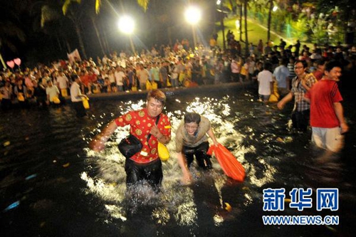 元宵之夜,華裔單身男女紛紛走出家門,涌向公園的河邊或湖邊,男的拋香蕉,女的拋柑橘,還在水果上寫上聯(lián)絡(luò)號碼,以期覓得一段好姻緣。