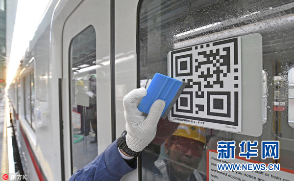 2017年11月24日,日本東京,地鐵列車(chē)門(mén)上的二維碼,一旦乘客發(fā)現(xiàn)任何異常,可通過(guò)掃描二維碼來(lái)通知地鐵工作人員。