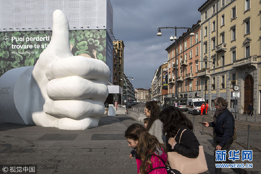 畫風(fēng)清奇!意大利米蘭地標(biāo)建筑旁現(xiàn)“點贊”大拇指