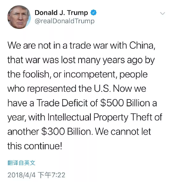 昨天,特朗普發(fā)了他“貿易戰(zhàn)”之后的首條推特……