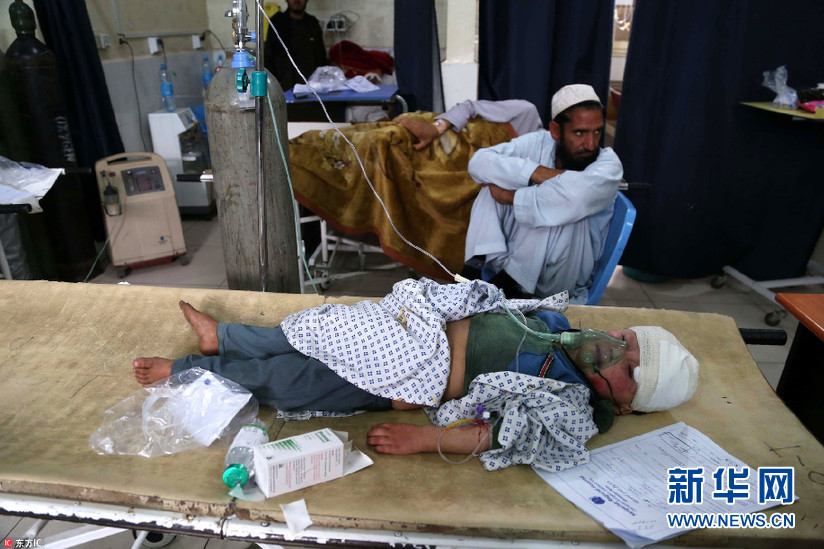 當(dāng)?shù)貢r(shí)間2018年4月20日,阿富汗賈拉拉巴德,受傷的兒童在醫(yī)院接受治療。4月19日,當(dāng)?shù)匕l(fā)生爆炸事故,致至少5名平民死亡,14人受傷。(圖片來源:東方IC)