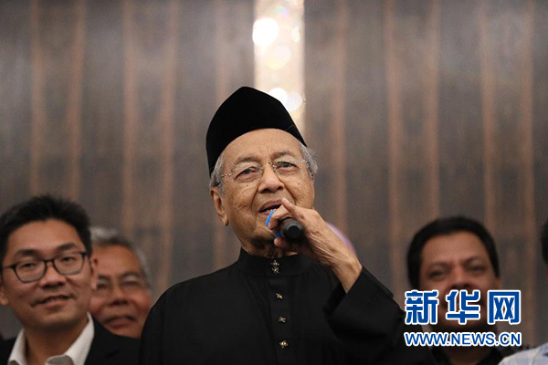 5月10日,在馬來(lái)西亞必打靈查亞,馬哈蒂爾宣誓就任總理后出席新聞發(fā)布會(huì)。新華社記者朱煒攝