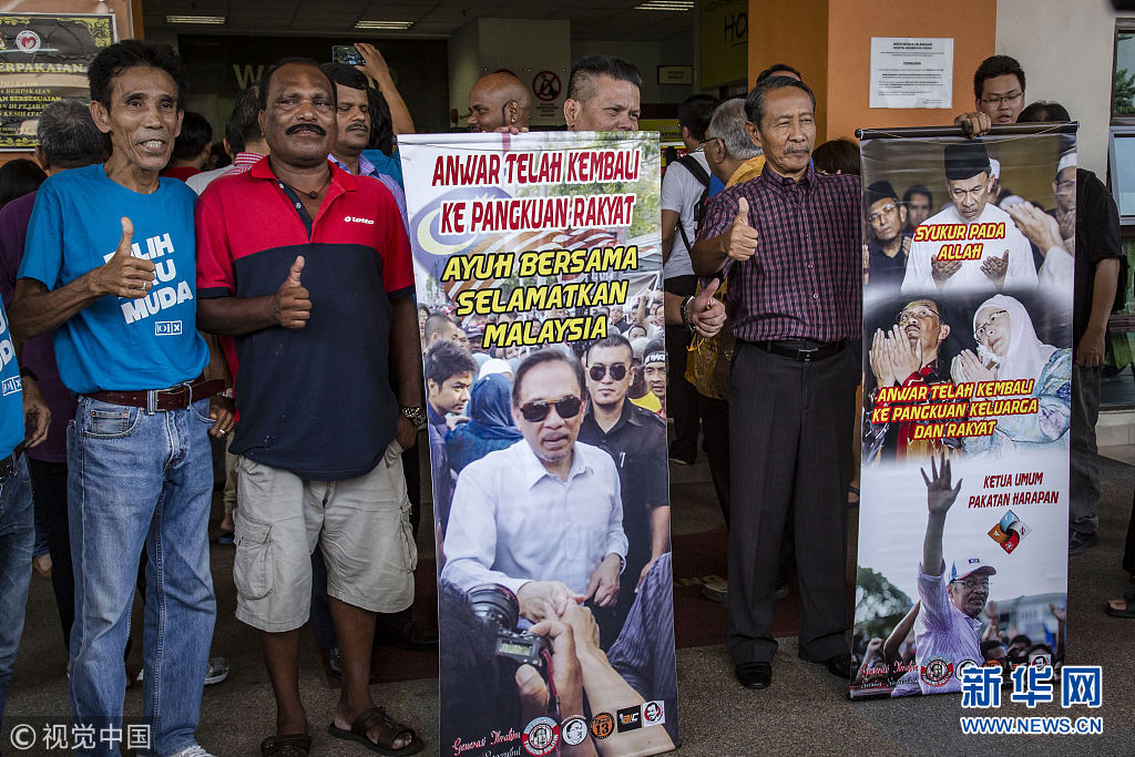 2018年5月11日訊,馬來(lái)西亞新當(dāng)選總理馬哈蒂爾表示,最高元首已經(jīng)同意特赦前副總理安瓦爾,希盟方面將盡快推動(dòng)有關(guān)程序。安瓦爾以前頗受馬哈蒂爾賞識(shí)和提攜,被外界視為馬哈蒂爾的接班人。然而,兩人后來(lái)鬧僵,馬哈蒂爾1998年革除安瓦爾的副總理之職。隨后幾年間,安瓦爾因貪腐和雞奸罪名入獄。路透社報(bào)道,根據(jù)馬哈蒂爾與安瓦爾“談妥”的條件,馬哈蒂爾贏得選舉后將向最高元首尋求特赦安瓦爾,待安瓦爾出獄后,便退位讓賢,改由安瓦爾出任總理。不過(guò),馬來(lái)西亞法律規(guī)定出獄者5年內(nèi)不得參政,即便獲特赦也要參加國(guó)會(huì)議席補(bǔ)選才有望重返政壇。(圖片來(lái)源:視覺(jué)中國(guó))