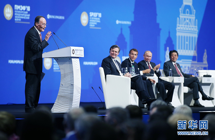 當(dāng)?shù)貢r(shí)間5月25日,中國(guó)國(guó)家副主席王岐山應(yīng)邀出席第二十二屆圣彼得堡國(guó)際經(jīng)濟(jì)論壇并致辭。 新華社記者姚大偉攝