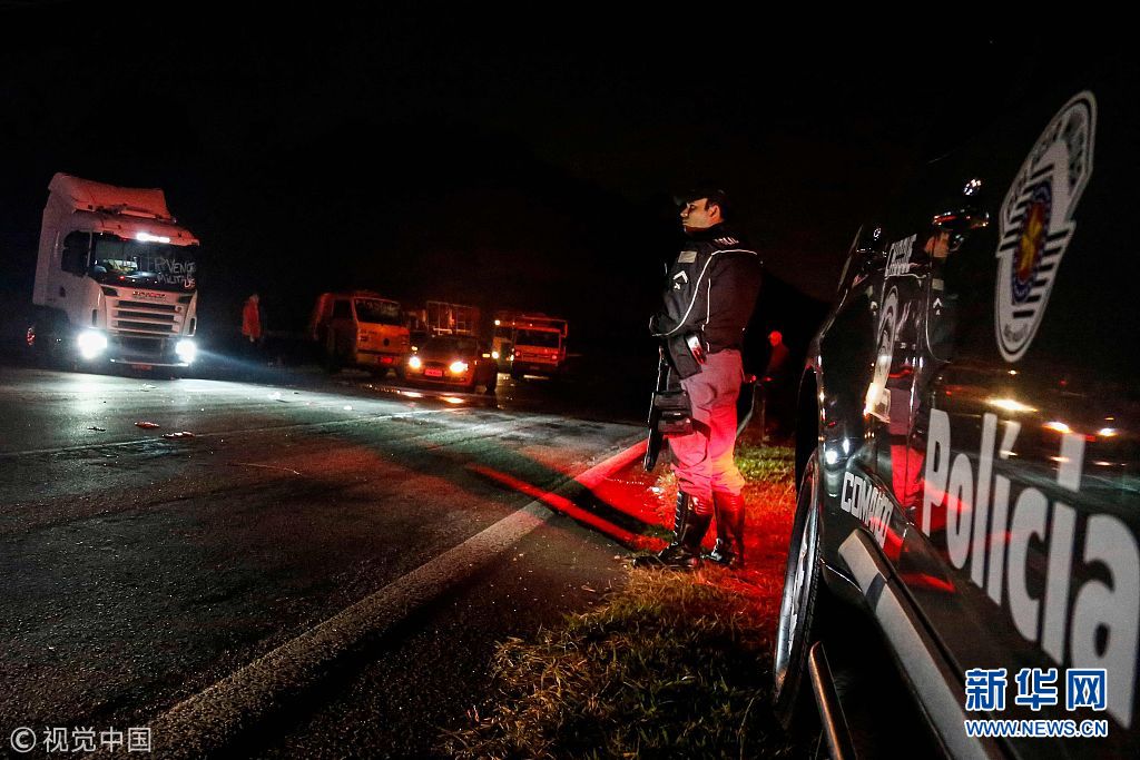 當(dāng)?shù)貢r間2018年5月26日,巴西圣貝爾納多杜坎普,卡車司機駕車封堵高速公路,抗議油價上漲。(圖片來源:視覺中國)