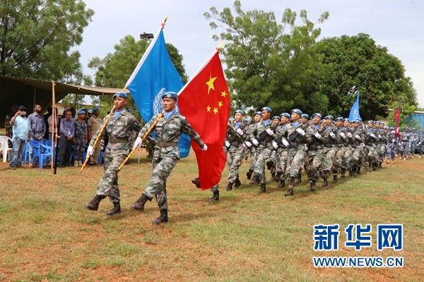 在隨后舉行的閱兵儀式上,中國(guó)維和部隊(duì)派出23名工兵組成的方隊(duì)。他們踏著雄壯的步伐,肩扛和平的旗幟,整齊地走過(guò)閱兵臺(tái),展現(xiàn)了中國(guó)人民解放軍“威武之師、文明之師、勝利之師”的良好形象,受到聯(lián)合國(guó)在場(chǎng)人員高度評(píng)價(jià)。