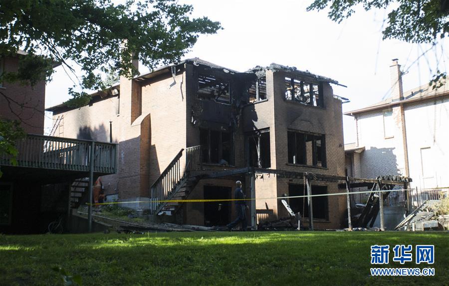 5月30日,在加拿大多倫多,警方在失火房屋外拉起警戒線并展開調(diào)查。新華社發(fā)(鄒崢 攝)