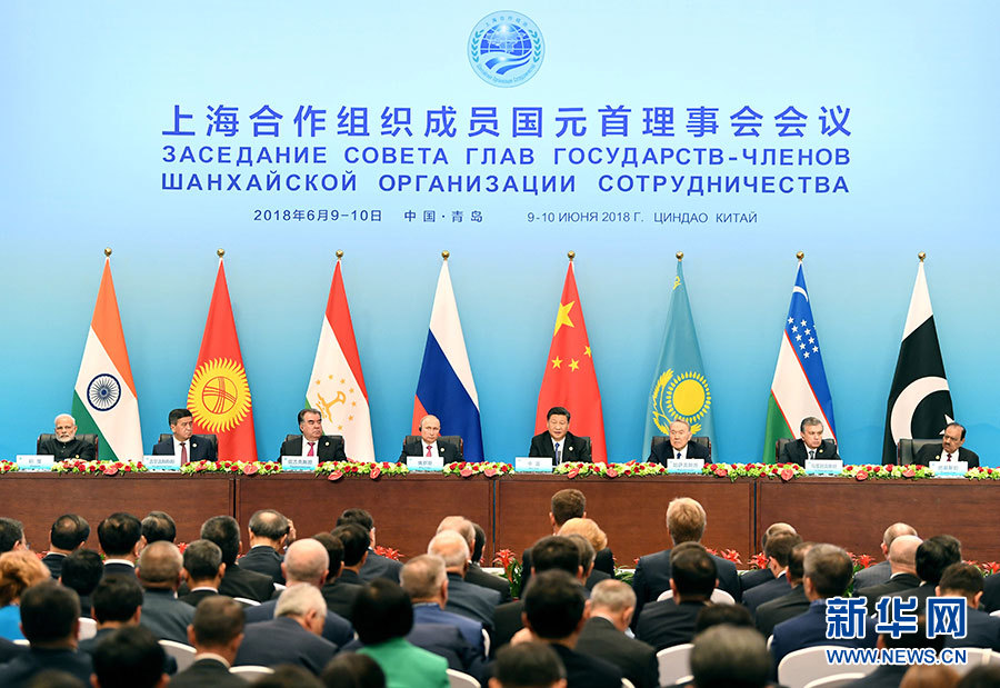6月10日,上海合作組織成員國領(lǐng)導(dǎo)人共同會見記者。國家主席習(xí)近平作為主席國元首發(fā)表講話。印度總理莫迪、哈薩克斯坦總統(tǒng)納扎爾巴耶夫、吉爾吉斯斯坦總統(tǒng)熱恩別科夫、巴基斯坦總統(tǒng)侯賽因、俄羅斯總統(tǒng)普京、塔吉克斯坦總統(tǒng)拉赫蒙、烏茲別克斯坦總統(tǒng)米爾濟約耶夫出席。新華社記者 燕雁 攝