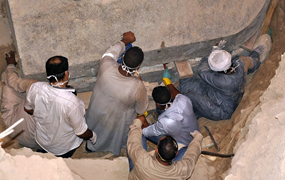 7月19日,考古人員在埃及亞歷山大的石棺開啟現(xiàn)場工作。 埃及文物部19日宣布,考古人員近日在埃及北部地中海沿岸城市亞歷山大發(fā)現(xiàn)一口裝有三具古代武士遺骸的石棺。 新華社發(fā)