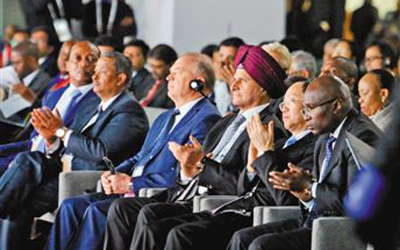 在金磚國家工商論壇會場,會議主持人在致開幕詞時,提議與會嘉賓起立鼓掌一分鐘,為金磚國家這些年取得的合作成就喝彩。坐在本報記者身旁的一位先生掌聲尤其熱烈,一邊鼓掌,一邊還發(fā)出歡呼聲。他是南非標(biāo)準(zhǔn)銀行總裁蘇卡尼·雅巴舍。