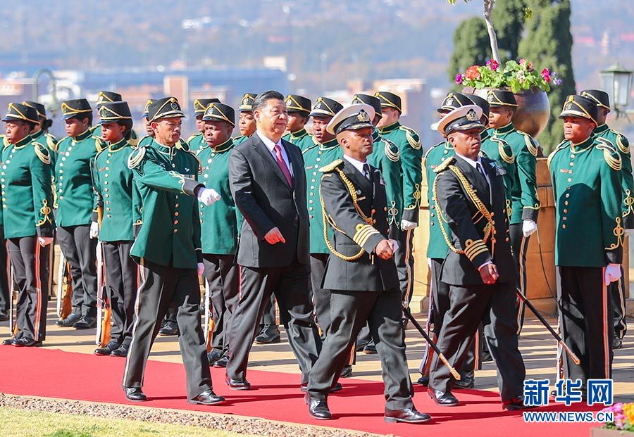 7月24日,國家主席習近平在比勒陀利亞同南非總統(tǒng)拉馬福薩舉行會談。會談前,拉馬福薩為習近平舉行隆重歡迎儀式。新華社記者謝環(huán)馳攝