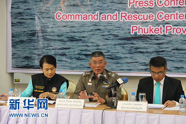 8月7日,普吉府警察局局長提拉蓬·提乍龍(中)在發(fā)布會(huì)上介紹案件調(diào)查情況。新華社記者 徐海濤 攝