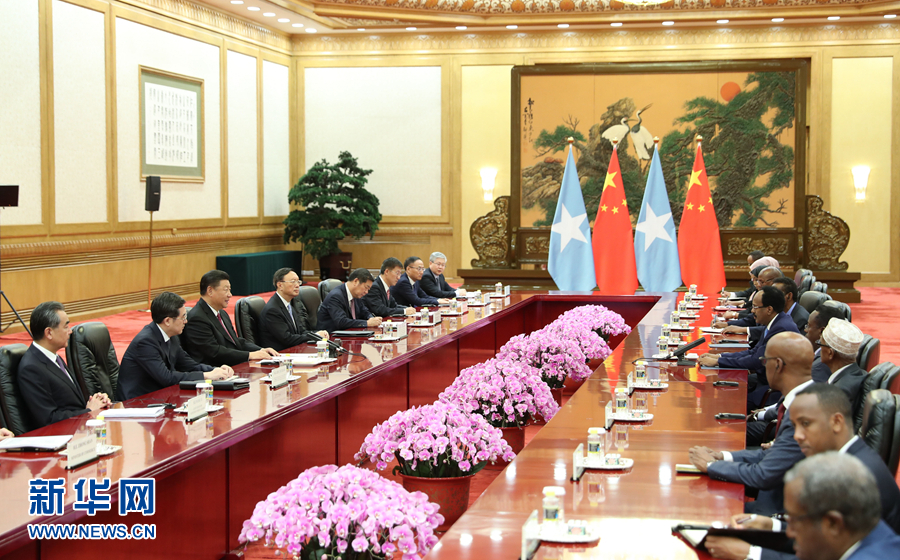 8月31日,國(guó)家主席習(xí)近平在北京人民大會(huì)堂會(huì)見(jiàn)索馬里總統(tǒng)穆罕默德。 新華社記者 丁林 攝