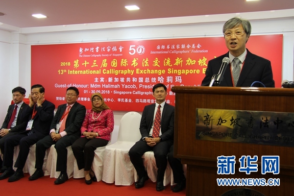 國際書法家聯(lián)合總會秘書長陳洪武在致辭時(shí)說,新加坡書法家協(xié)會是新加坡最早的全國性書法組織,也是國際書法家聯(lián)合總會的發(fā)起者和首創(chuàng)者之一。