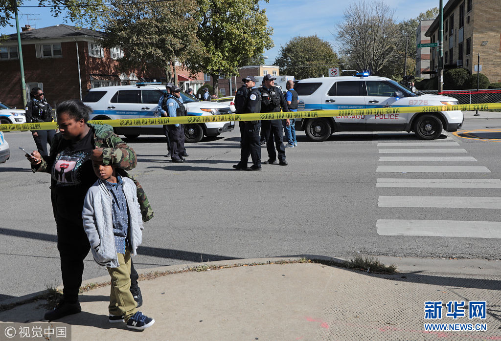 當(dāng)?shù)貢r(shí)間2018年10月22日,美國芝加哥,當(dāng)?shù)嘏e行一場(chǎng)葬禮后發(fā)生襲擊,共有6人遭到槍擊,目前當(dāng)?shù)鼐揭言趯?duì)該案進(jìn)行調(diào)查。(圖片來源:視覺中國)
