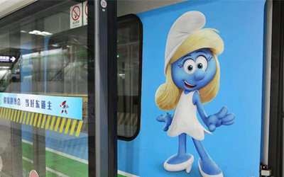 “藍精靈號”地鐵上,個性各異的藍精靈們則“站立”在車廂、車門、車壁上,幾乎與乘客“等大”。這些藍精靈卡通形象活靈活現(xiàn),乘客可以在地鐵上重溫美好的童年時光。