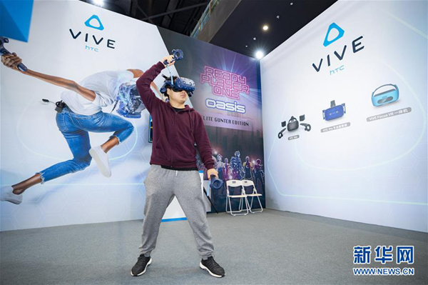 11月7日,參觀者在第五屆世界互聯(lián)網(wǎng)大會(huì)上體驗(yàn)虛擬現(xiàn)實(shí)技術(shù)。當(dāng)日,第五屆世界互聯(lián)網(wǎng)大會(huì)在浙江烏鎮(zhèn)開(kāi)幕。 新華社記者 才揚(yáng) 攝