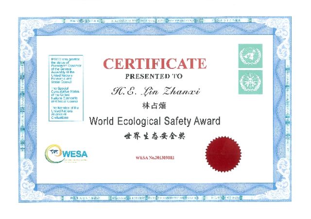 林占熺獲得世界生態(tài)安全獎——個人。(林占熺提供)