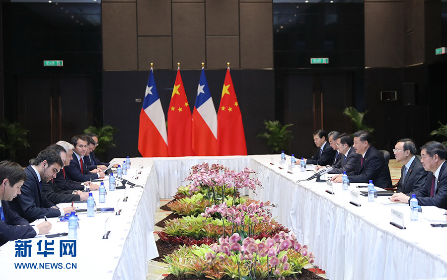 習(xí)近平強(qiáng)調(diào),中智已經(jīng)簽署“一帶一路”政府間合作協(xié)議,下一步要確定重點(diǎn)領(lǐng)域和項(xiàng)目,爭取實(shí)現(xiàn)早期收獲。要充分發(fā)揮雙邊合作機(jī)制作用。要以中智自由貿(mào)易協(xié)定升級為契機(jī),推動擴(kuò)大雙邊貿(mào)易規(guī)模,優(yōu)化貿(mào)易結(jié)構(gòu),深化投資合作,扎實(shí)推進(jìn)重大互聯(lián)互通項(xiàng)目。2020年中智將迎來建交50周年,雙方要共同辦好一系列慶?;顒?。中方愿同智方加強(qiáng)科技、南極等領(lǐng)域合作。中方支持智利明年主辦亞太經(jīng)合組織領(lǐng)導(dǎo)人非正式會議,共同推進(jìn)亞太自由貿(mào)易區(qū)建設(shè)。
