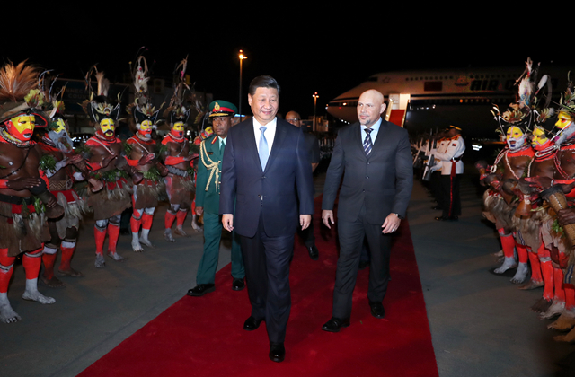 2018年11月15日,國(guó)家主席習(xí)近平乘專機(jī)抵達(dá)莫爾茲比港,開始對(duì)巴布亞新幾內(nèi)亞獨(dú)立國(guó)進(jìn)行國(guó)事訪問(wèn)、同建交太平洋島國(guó)領(lǐng)導(dǎo)人會(huì)晤并出席亞太經(jīng)合組織第二十六次領(lǐng)導(dǎo)人非正式會(huì)議。(新華社記者鞠鵬攝)