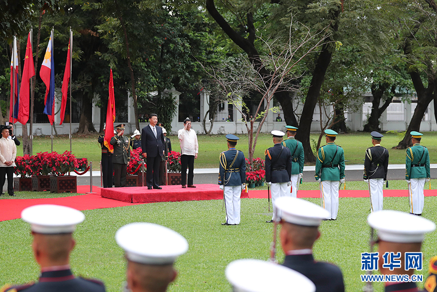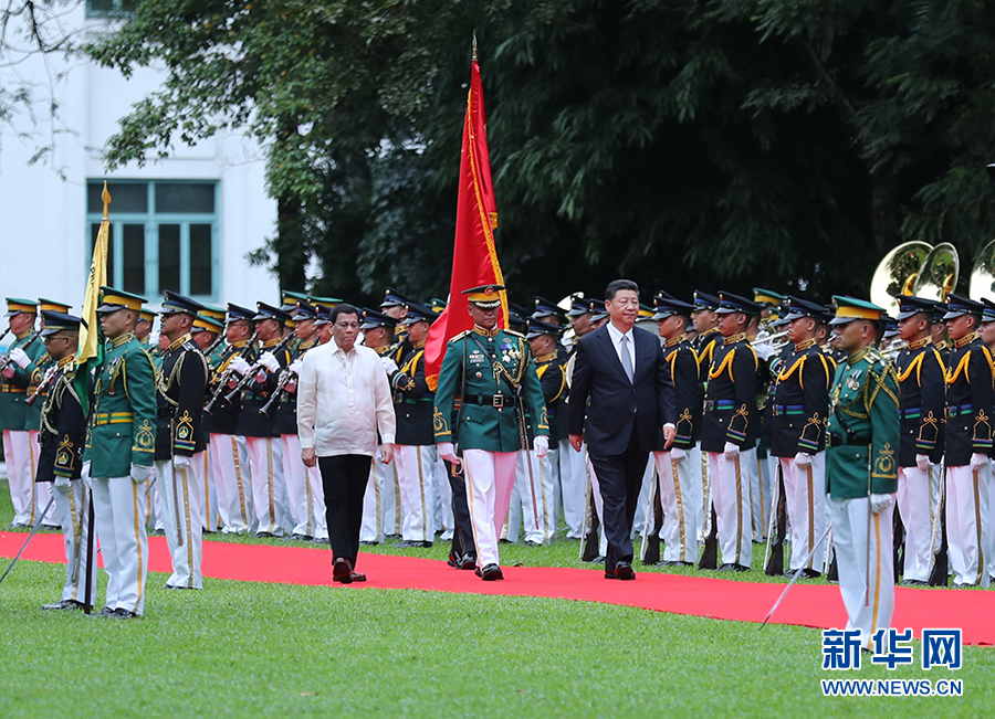11月20日,國(guó)家主席習(xí)近平在馬尼拉同菲律賓總統(tǒng)杜特爾特舉行會(huì)談。會(huì)談開(kāi)始前,習(xí)近平出席杜特爾特在總統(tǒng)府前草坪舉行的隆重歡迎儀式。 新華社記者 丁林 攝