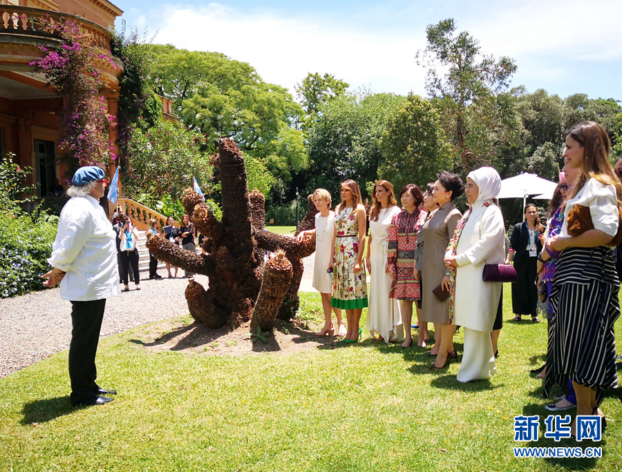 當(dāng)?shù)貢r(shí)間11月30日上午,應(yīng)阿根廷總統(tǒng)夫人阿瓦達(dá)邀請(qǐng),國家主席習(xí)近平夫人彭麗媛和出席二十國集團(tuán)領(lǐng)導(dǎo)人布宜諾斯艾利斯峰會(huì)的部分國家領(lǐng)導(dǎo)人配偶共同參觀奧坎波故居。 新華社記者 王曄攝
