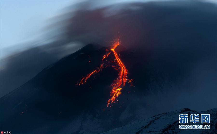 意大利埃特納火山噴發(fā) 熔巖噴射猶如煙火綻放