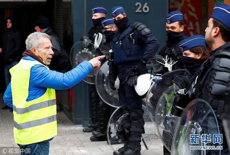 當(dāng)?shù)貢r(shí)間12月15日,比利時(shí)布魯塞爾,當(dāng)?shù)乇l(fā)“黃背心”抗議活動(dòng)。 (圖片來源:視覺中國(guó))