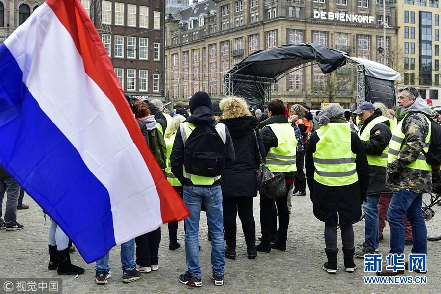 當(dāng)?shù)貢r(shí)間12月15日,荷蘭阿姆斯特丹,當(dāng)?shù)乇l(fā)“黃背心”抗議活動(dòng)。(圖片來(lái)源:視覺中國(guó))