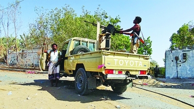 11月15日,在也門荷臺達(dá),支持也門政府的武裝人員在一輛軍車上。新華社發(fā)