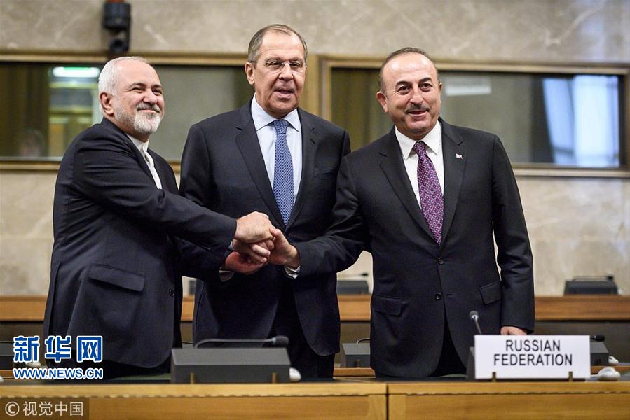 當(dāng)?shù)貢r(shí)間2018年12月18日,瑞士日內(nèi)瓦,俄羅斯、土耳其、伊朗三國(guó)外長(zhǎng)與聯(lián)合國(guó)敘利亞問(wèn)題特使一同出席會(huì)議,就成立敘利亞憲法委員會(huì)進(jìn)行討論。(圖片來(lái)源:視覺(jué)中國(guó))
