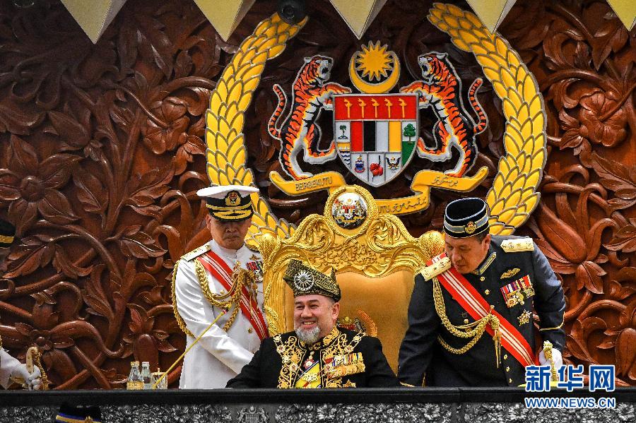 這是2018年7月17日,在馬來西亞吉隆坡,穆罕默德五世(中)出席國會會議的資料照片。 新華社發(fā)(張紋綜攝)