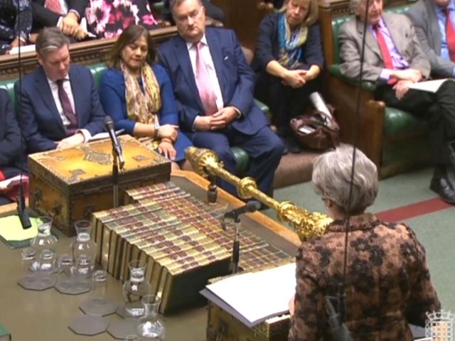 1月21日,在英國倫敦,英國首相特雷莎·梅(前)在議會(huì)下院講話。(新華/美聯(lián))