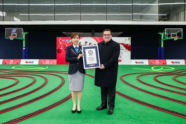 2019年1月9日,來(lái)自智利的24638個(gè)深紅色大櫻桃,漂洋過(guò)海來(lái)到中國(guó)上海,通過(guò)排列,組成了兩顆手牽手櫻桃的巨大圖案,創(chuàng)造了“最長(zhǎng)的水果隊(duì)列”吉尼斯世界紀(jì)錄稱(chēng)號(hào)。
