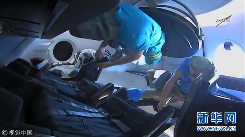 2019年3月3日,美國宇航局在任務現(xiàn)場直播視頻宣布,SpaceX“龍”飛船成功與國際空間站進行對接。3月2日,載人“龍”飛船搭乘“獵鷹9”火箭在美國佛羅里達州肯尼迪航天中心39A發(fā)射臺升空。飛船里有個假人模型,用來記錄真實宇航員承受的各項數(shù)據(jù)。(視頻截圖)(圖片來源:視覺中國)