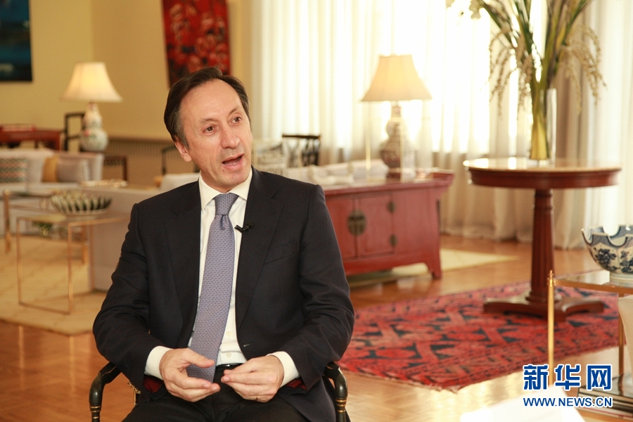 葡萄牙駐華大使杜傲杰接受新華網(wǎng)專訪。新華網(wǎng)發(fā) 陳穎 攝