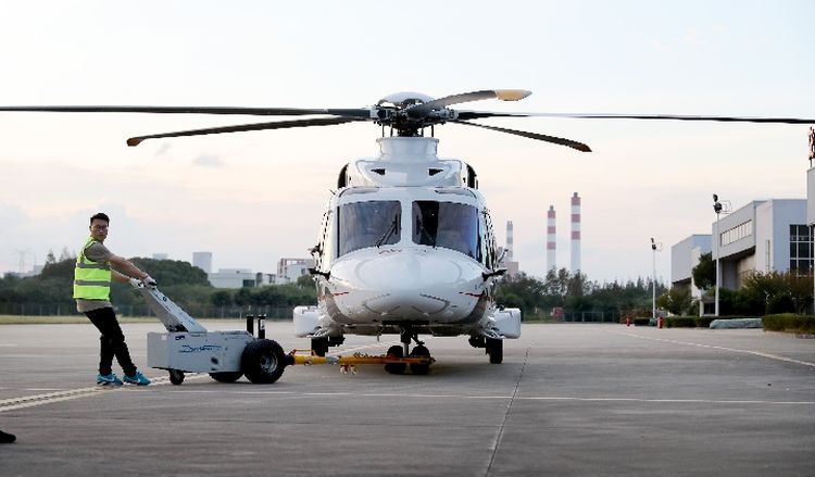 作為首屆中國國際進(jìn)口博覽會上的展品,意大利萊奧納多直升機(jī)公司AW189直升機(jī)入駐智能及高端裝備展區(qū)。(新華社記者方喆攝)