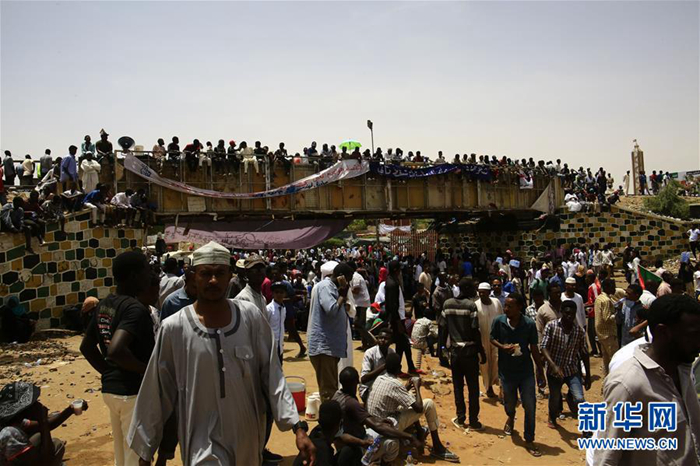 4月12日,人們?cè)谔K丹喀土穆參加反對(duì)過(guò)渡軍事委員會(huì)的集會(huì)。新華社發(fā)(穆罕默德·海德?tīng)?攝)