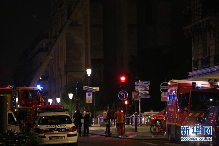 4月15日,在法國巴黎,警車和消防車??吭诎屠枋ツ冈号浴P氯A社記者 高靜 攝