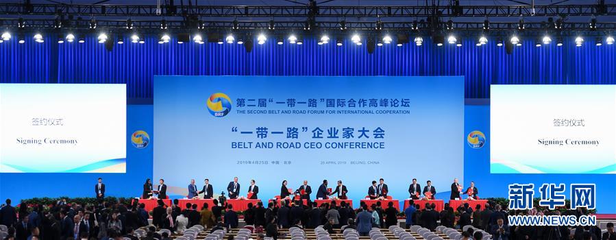 4月25日,首屆“一帶一路”企業(yè)家大會在北京舉行。這是簽約儀式現(xiàn)場。新華社記者 陳曄華 攝