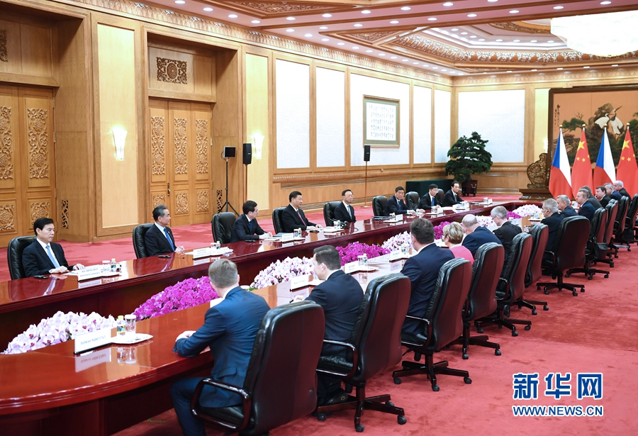 4月28日,國(guó)家主席習(xí)近平在北京人民大會(huì)堂會(huì)見(jiàn)捷克總統(tǒng)澤曼。 新華社記者 姚大偉 攝